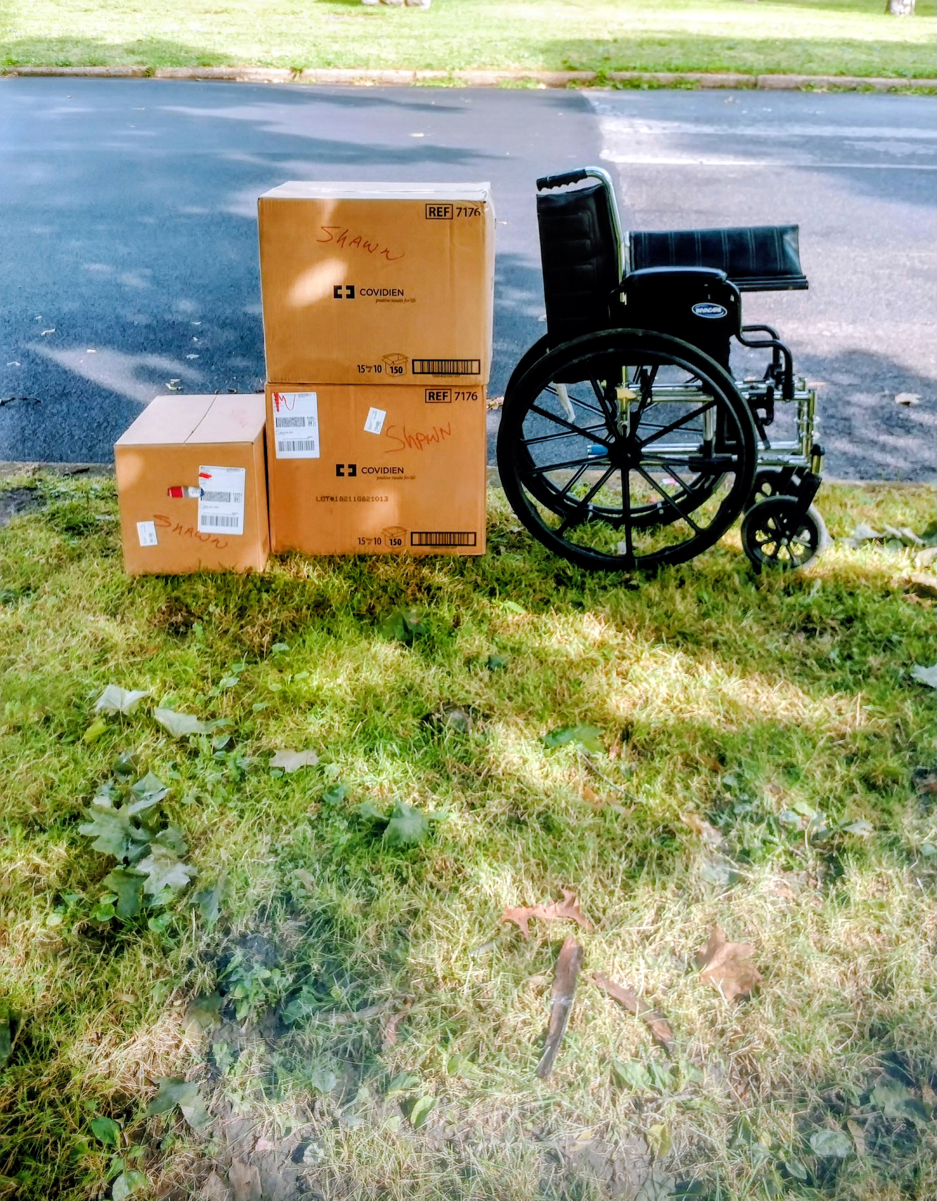 A few years back as I was walking the dogs I came upon this sad sight. My brain filled with a vision of poor Shawn dragging his dysfunctional legs as he crawls along on his hands after being kicked to the curb.
